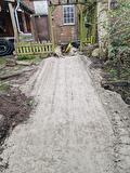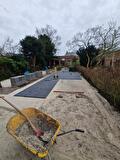 daarna hebben we het zandbed aangelegd om vervolgens 60x 60 tegels te leggen.